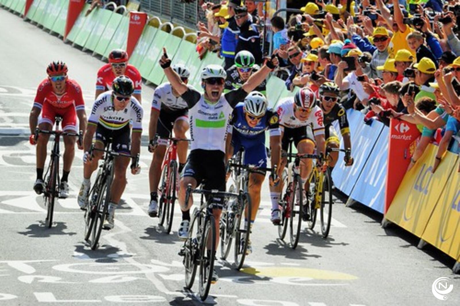 Een Brit die een Duitser verslaat op Utah Beach. Iets mooiers konden de organisatoren van de Ronde van Frankrijk zichzelf op het einde van de eerste rit niet wensen. Mark Cavendisch won in de spurt voor Marcel Kittel en Peter Sagan.