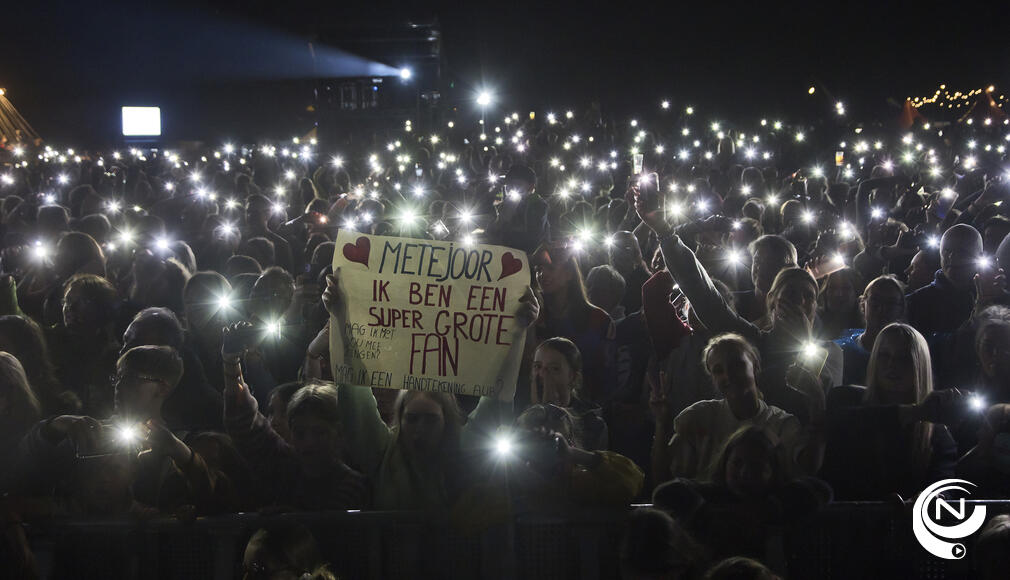 De Kempense Metejoor mocht gisteravond een uitverkochte NFB afsluiten. Z'n denderend concert had Camille al in de namiddag geplaveid met haar bekende blote nagelbuik en showelementen met een uitgekiende choreografie. Top. Toch stonden fans nog aan de ingang zonder tickets.