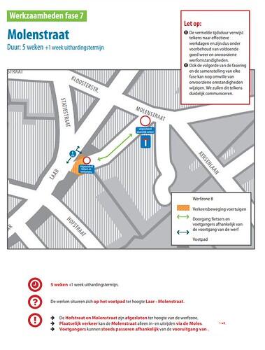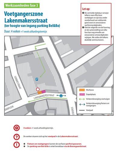 De werken aan het beperkt aantal parkeervakken worden telkens afgerond voor een dinsdagse marktdag, zodat marktkramers geen hinder ondervinden van de herstelling. Met deze aanpak blijven de Lakenmakersstraat en de handelszaken in de straat bereikbaar voor auto's, fietsers en voetgangers.