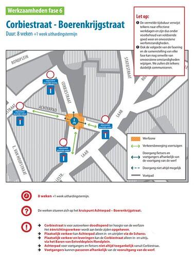 Het betere weer van de afgelopen weken zorgt ervoor dat de werken op het kruispunt Corbiestraat - Rondplein goed vooruitgaan. In de week van 15 maart rondt de aannemer deze herstelling normaal gezien af. Daarna moet alles nog een week uitharden. De aannemersploegen zijn hierdoor vrij om vanaf 22 maart te starten met de volgende fase.
