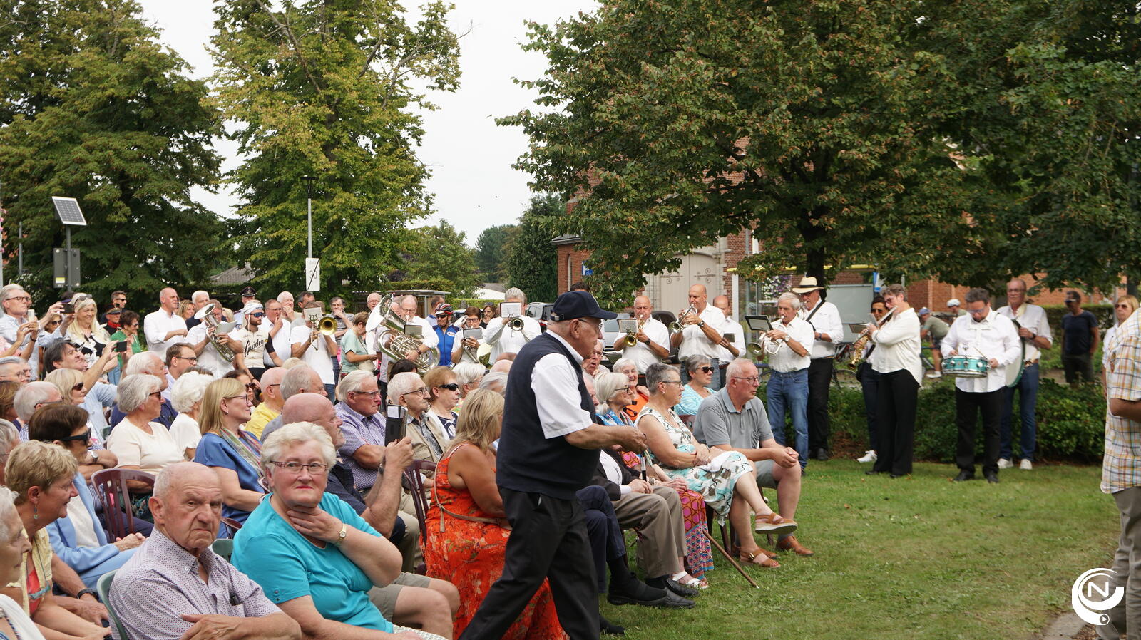 Nest Seymens en Fred Janssens onthulden trots het monument onder de feestelijke muziek van de lokale Fanfare De Verbroedering. Het organiserend comité had aan alles gedacht : je ontdekte tussen de massa zelfs rasechte gendarmes en een champetter uit de gouden jaren toen Nest furore maakte.
