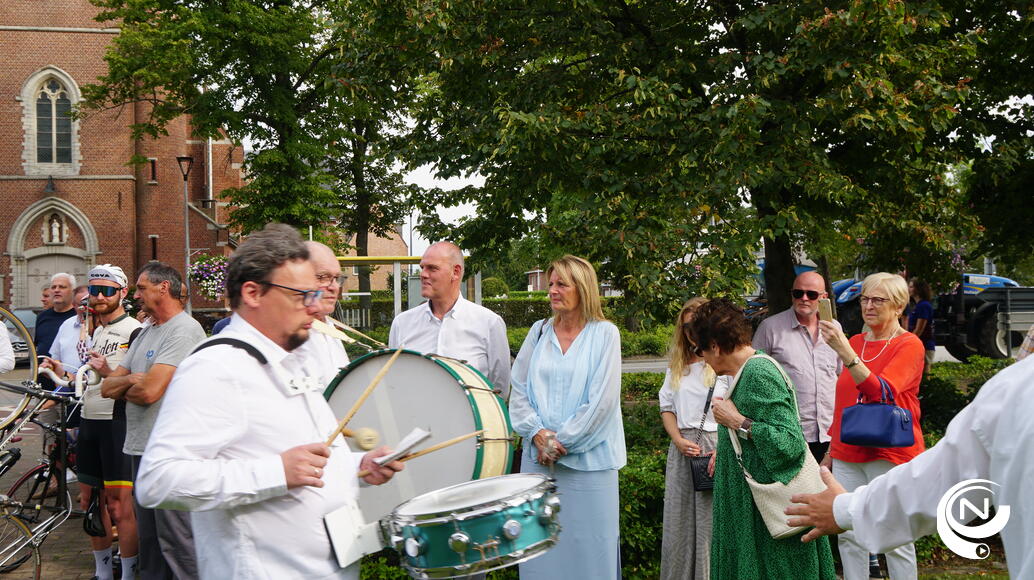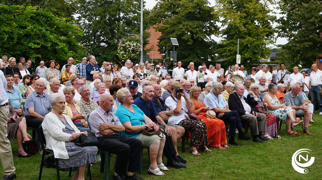 Nest Seymens en Fred Janssens onthulden trots het monument onder de feestelijke muziek van de lokale Fanfare De Verbroedering. Het organiserend comité had aan alles gedacht : je ontdekte tussen de massa zelfs rasechte gendarmes en een champetter uit de gouden jaren toen Nest furore maakte.