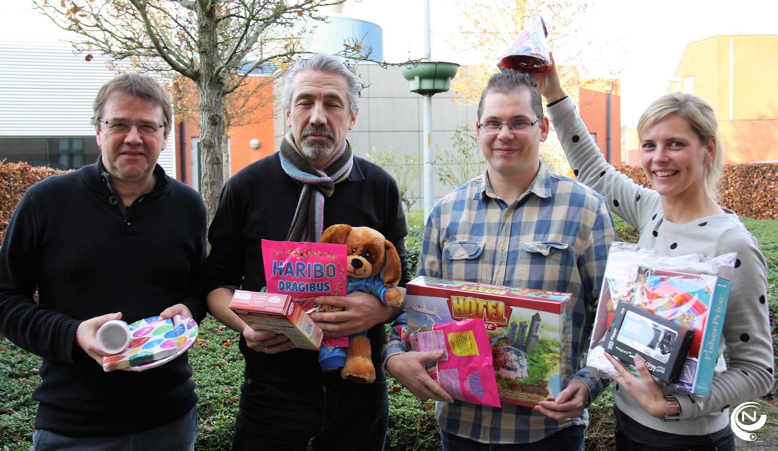 Foto v.l.n.r. : Kris Haeverans (secretaris OCMW), Wim Peeters (voorzitter OCMW), Sven Tormans (sociaal assistent OCMW), Katrin Janssen (Feestvarken vzw).