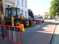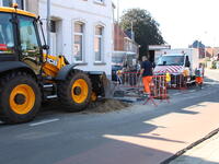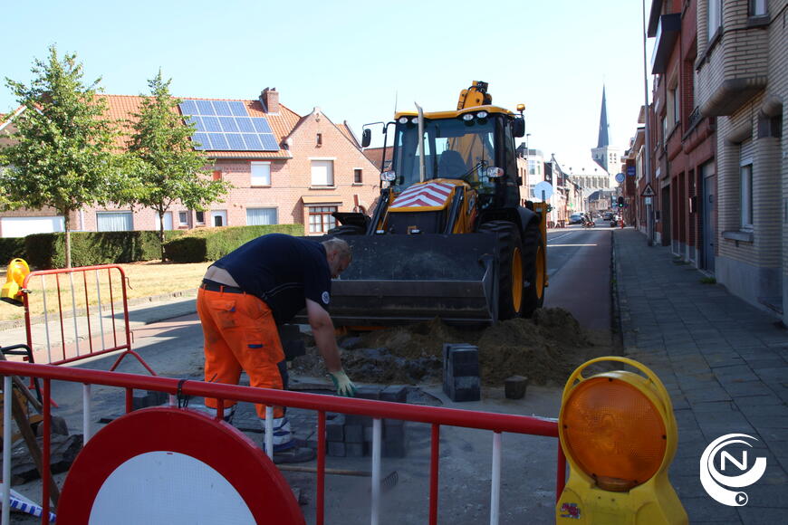 Arbeiders werken nu volop om de weg te herstellen. Burgemeester Jan Bertels : 'Ik hoop dat de hinder strikt beperkt blijft. We laten alles grondig onderzoeken. De herstellingswerken zouden dinsdag moeten rond zijn.'