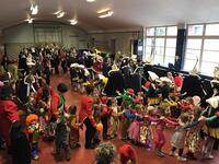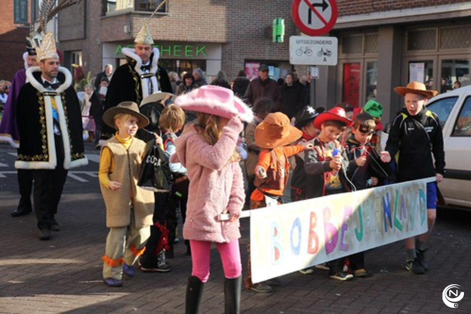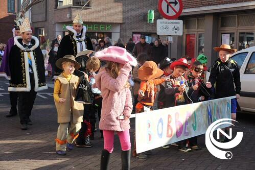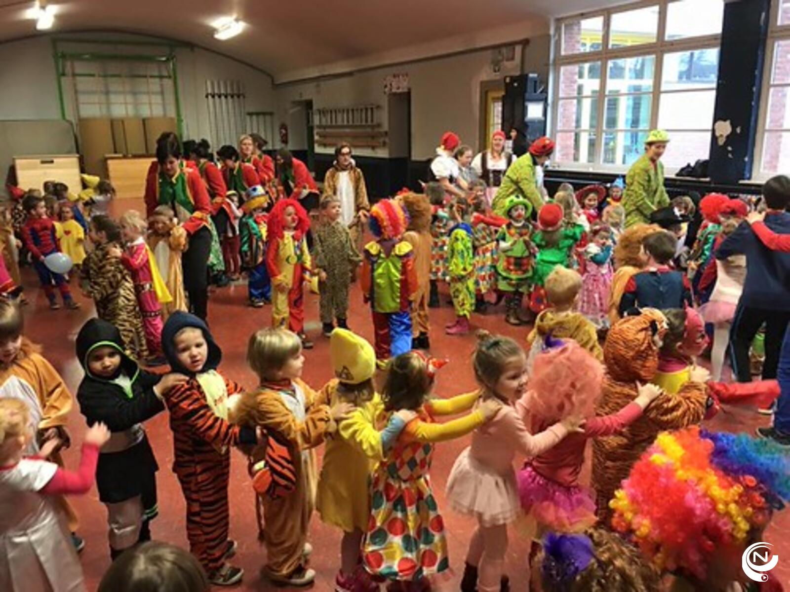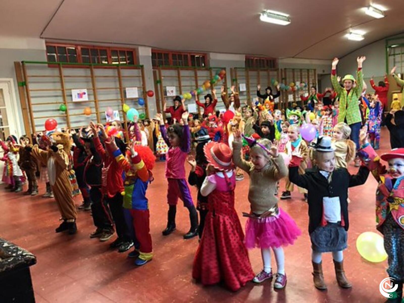 Ook de kinderen van basisschool Klim-Op vierden mee. De carnavalstoet eindigde op de speelplaats en de prinsen liepen mee in de gezellige polonaise.