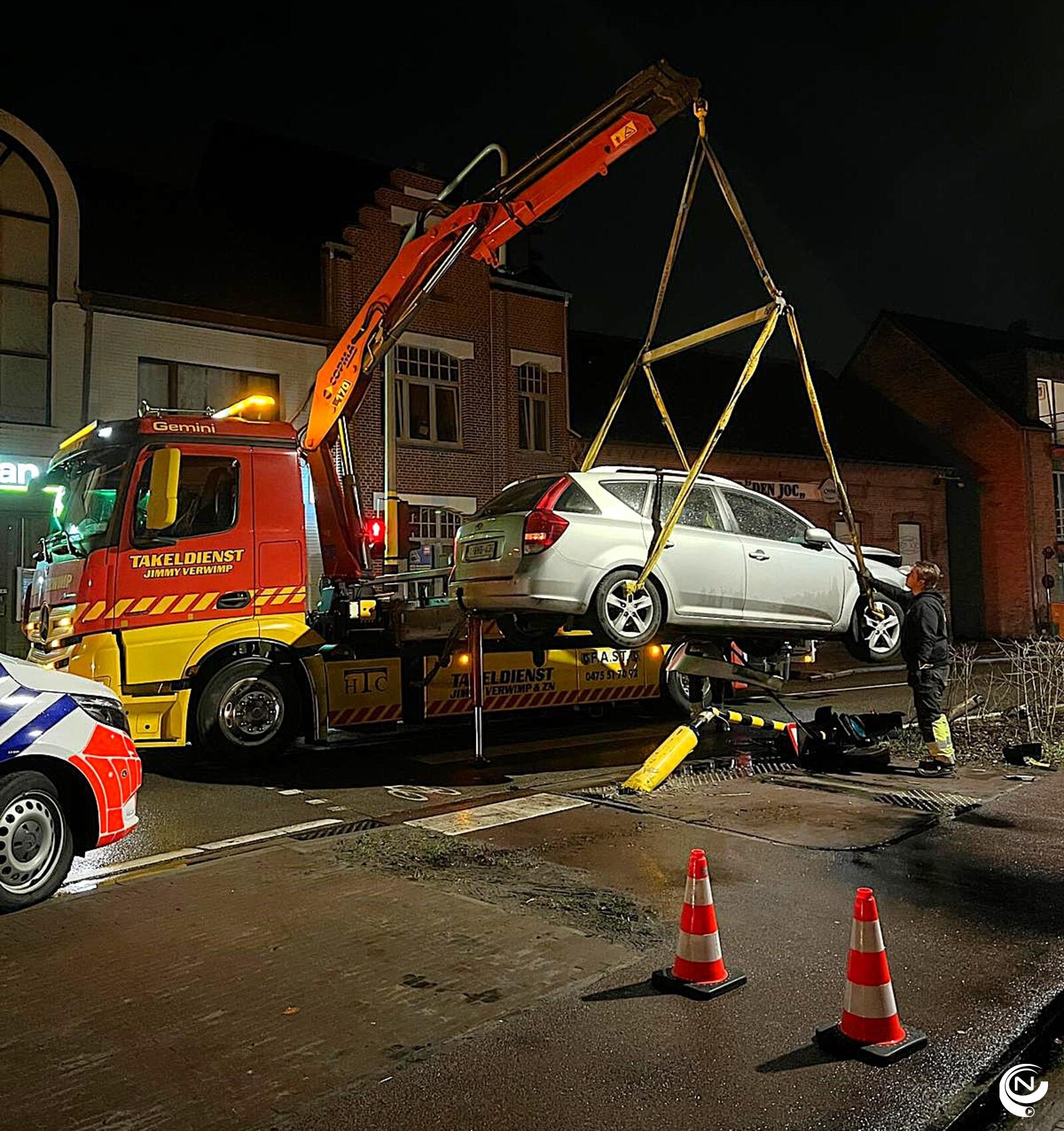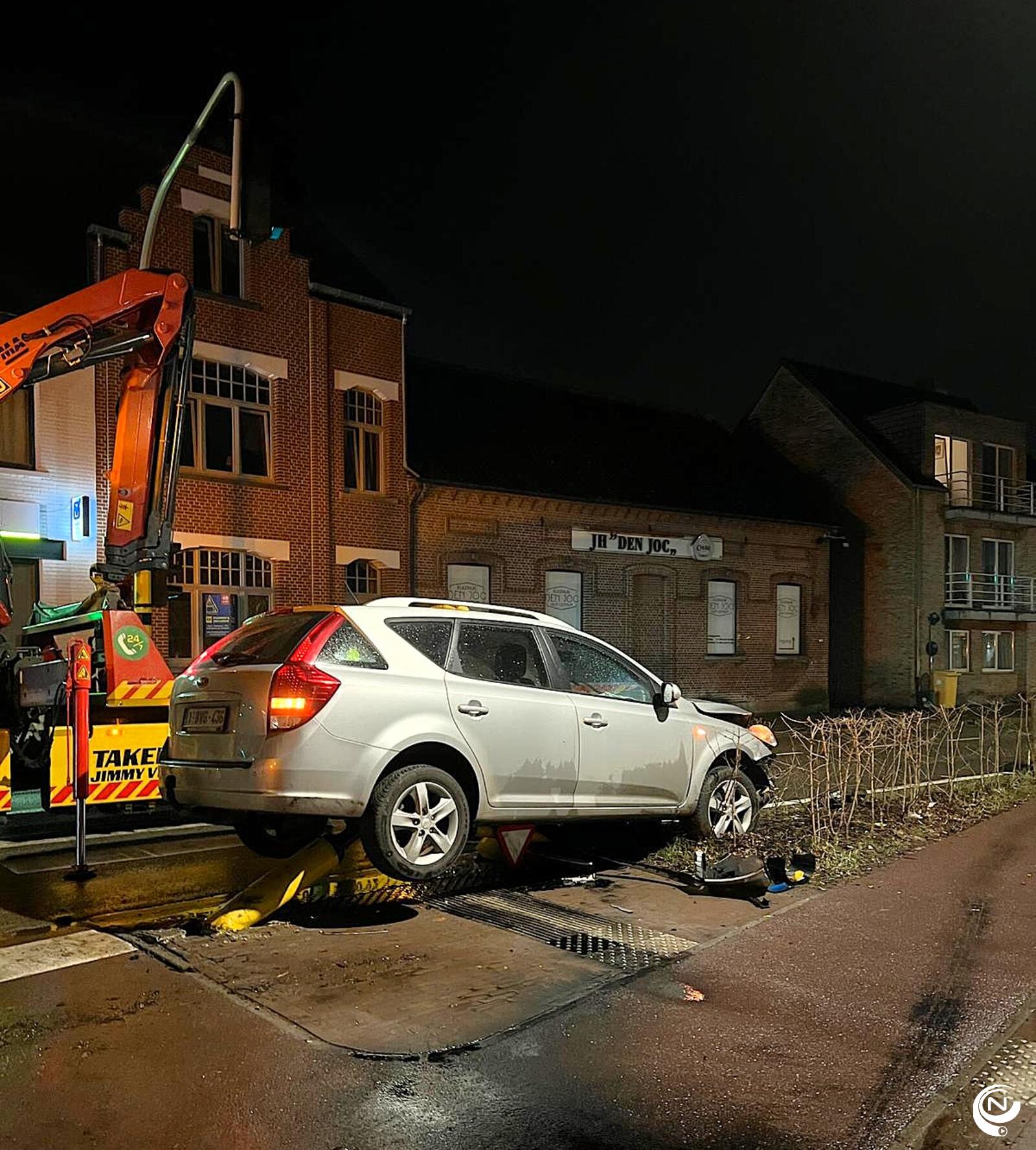 Personenwagen knalt tegen verkeerslicht in Olen-Centrum : 1 gewonde (63) - extra foto's