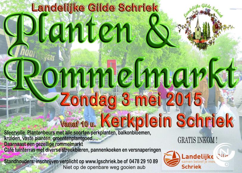 Naar jaarlijkse gewoonte organiseert de Landelijke Gilde van Schriek de eerste zondag van mei hun Planten en Rommelmarkt op het kerkplein van Schriek. Je vindt er alles wat je nodig hebt om je tuin in orde te maken tegen de zomer!