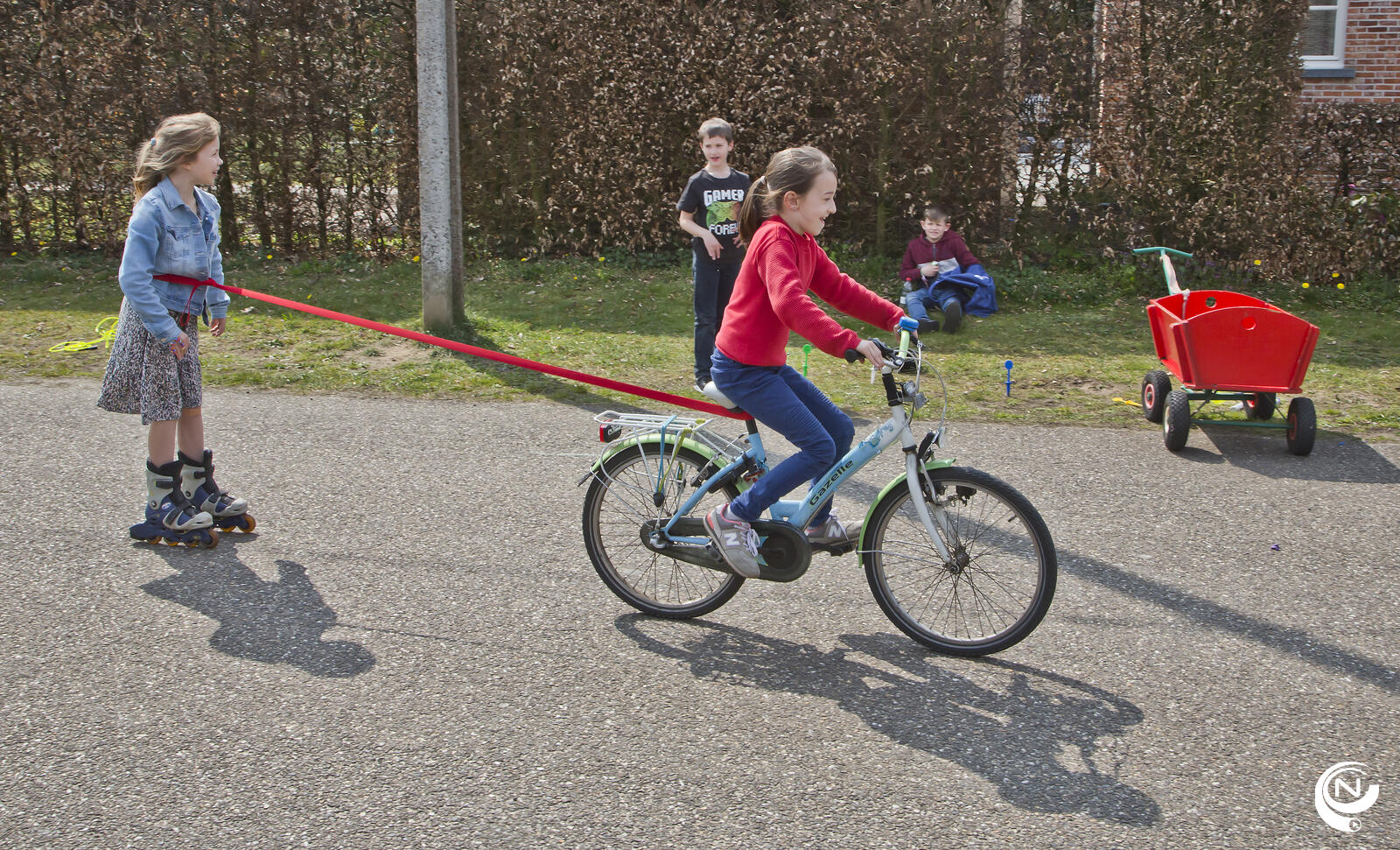 Het lokaal bestuur Vorselaar had een spelpakket met leuk spelmateriaal en speelimpulsen ter beschikking gesteld. Mooi. Foto's Adrie de Kok/Nnieuws.