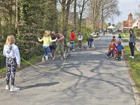 De buitenspeeldag kreeg ook in het Kastelendorp een stralend zonnetje. Heel wat kids kwamen in 6 'Speelstraten-voor-1-dag' wat sporten en spelen in hun onmiddellijke woonomgeving en ouders konden elkaar in de buitenlucht ontmoeten voor een babbeltje.