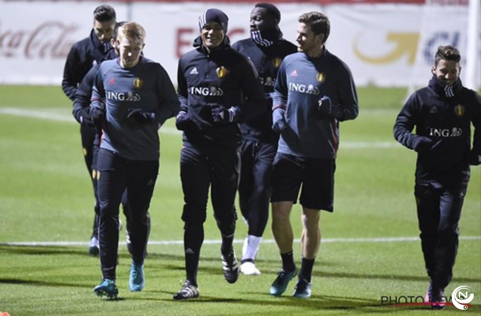 Fellaini is out met een blessure en is niet meer bij de kern. In de oefenpot tegen Nederland start Mignolet als doelman. Kevin De Bruyne is onzeker.