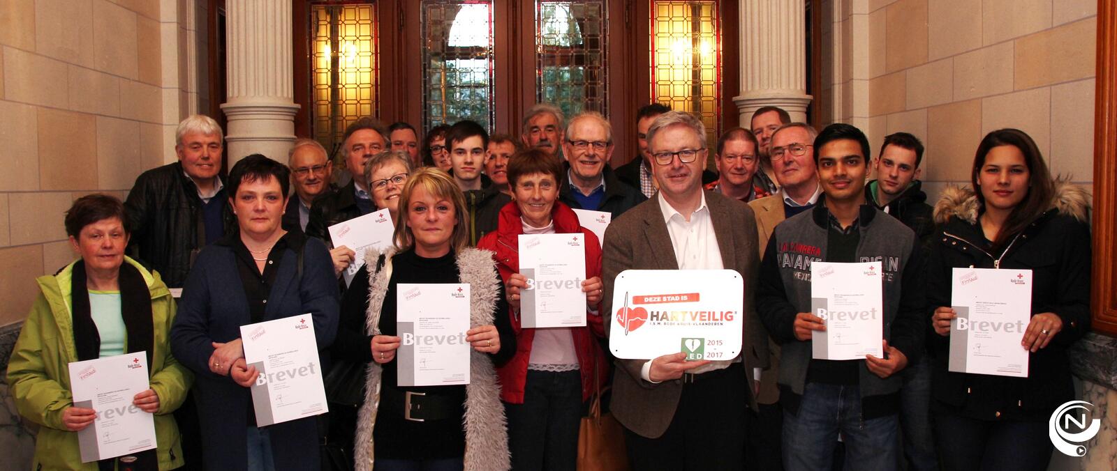 Dinsdagavond huldigde het Rode Kruis Herentals in kasteel Le Paige de 60 geslaagde cursisten van de reanimatie-AED-opleiding en een 10-tal van de vorming Hulp. RK-voorzitter Francis Van Leemputte : 'Medio 2015 ondertekenden de stad Herentals en het Rode Kruis een samenwerkingsovereenkomst om Herentals hartveilig te maken. De stad heeft ondertussen 2 AED's (automatische externe defibrillator) bij aangekocht.