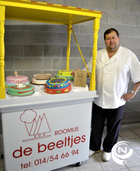 Foto : Marc Verbiest van De Beeltjes bij enkele ijstaarten van zijn hand.