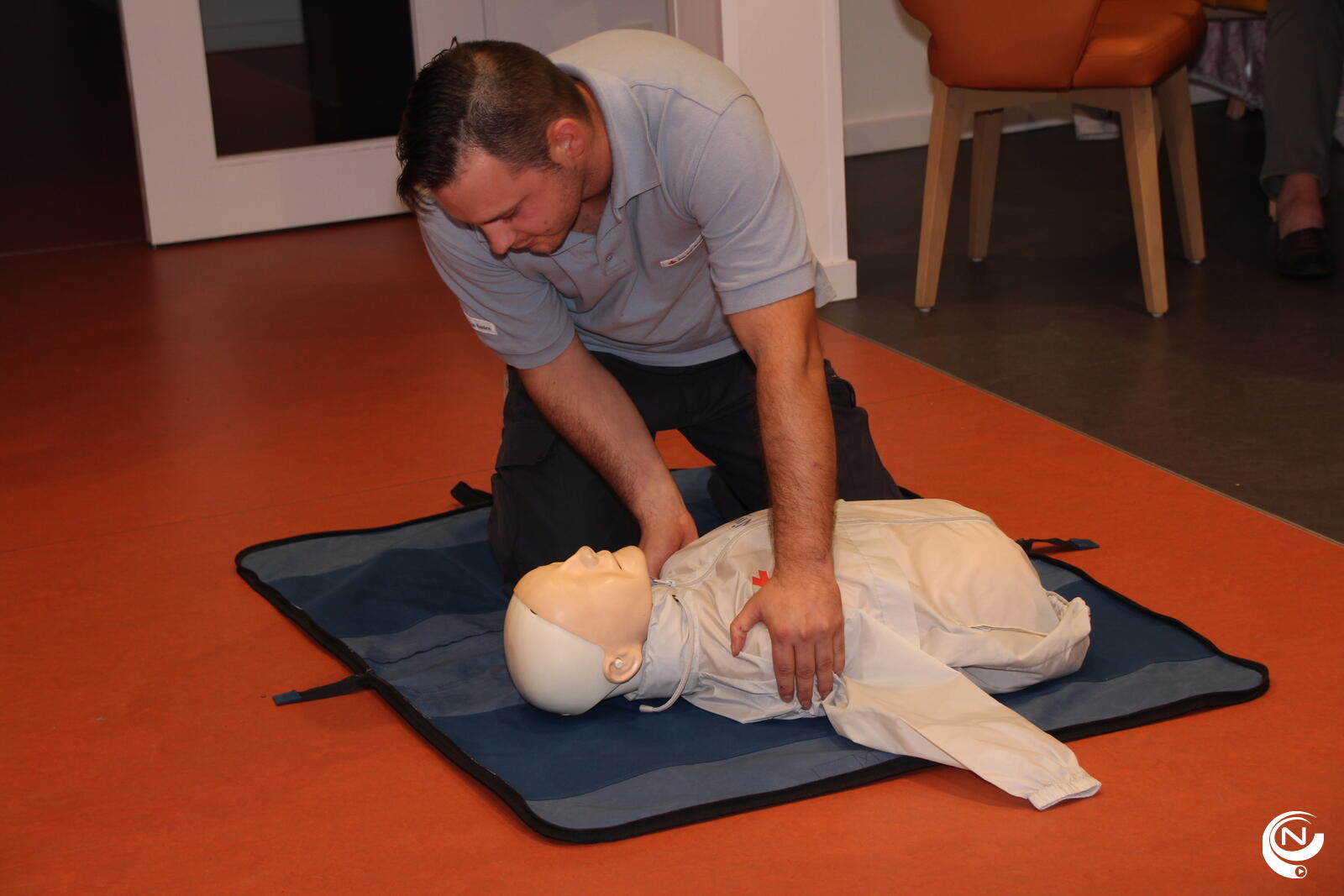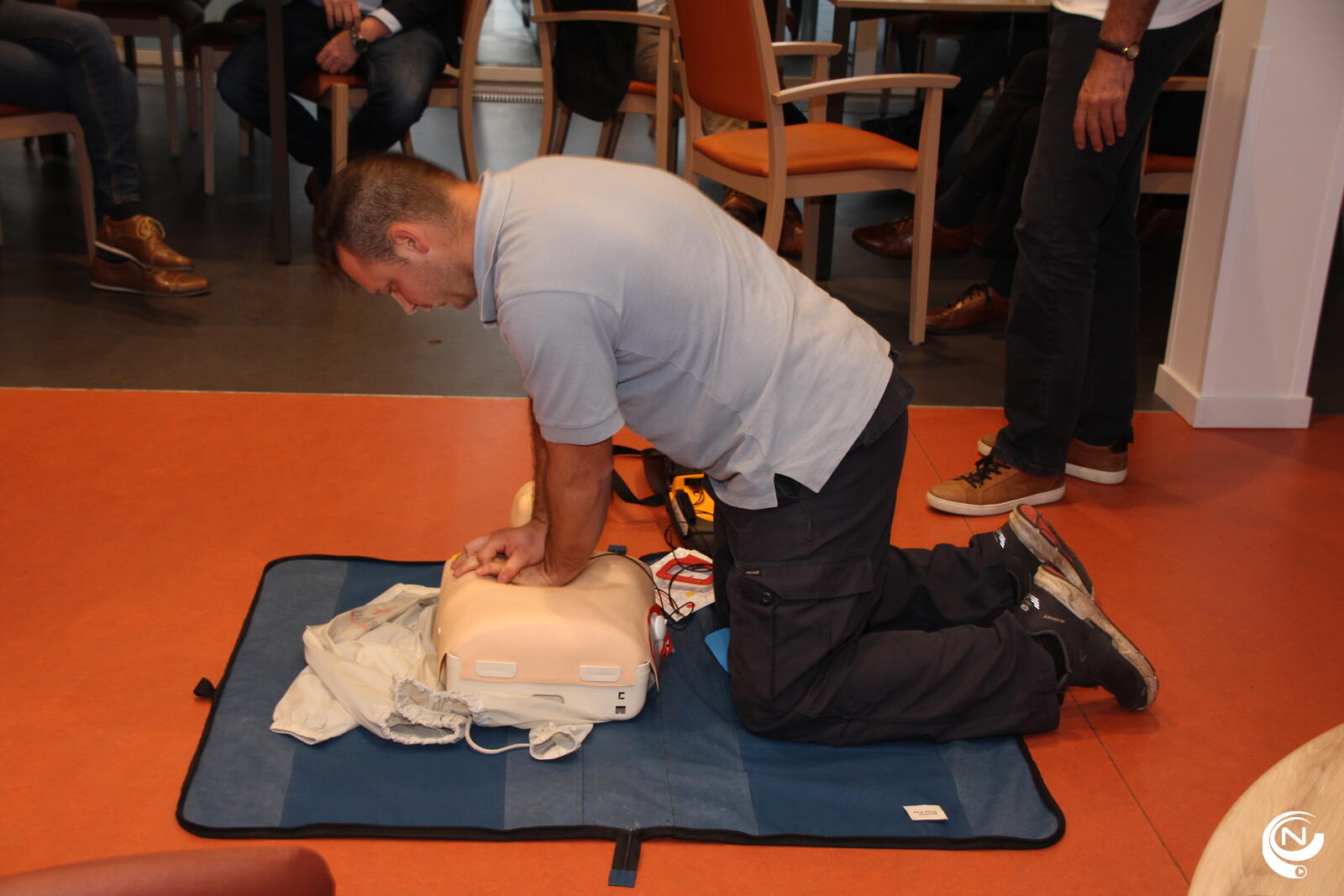 We organiseren ook in samenwerking met het Rode Kruis tussen 24 en 31 oktober opleidingen om een toestel te gebruiken, want we merken dat mensen daar niet vertrouwd mee zijn en soms een beetje angst hebben om op te treden en iets verkeerd te doen.