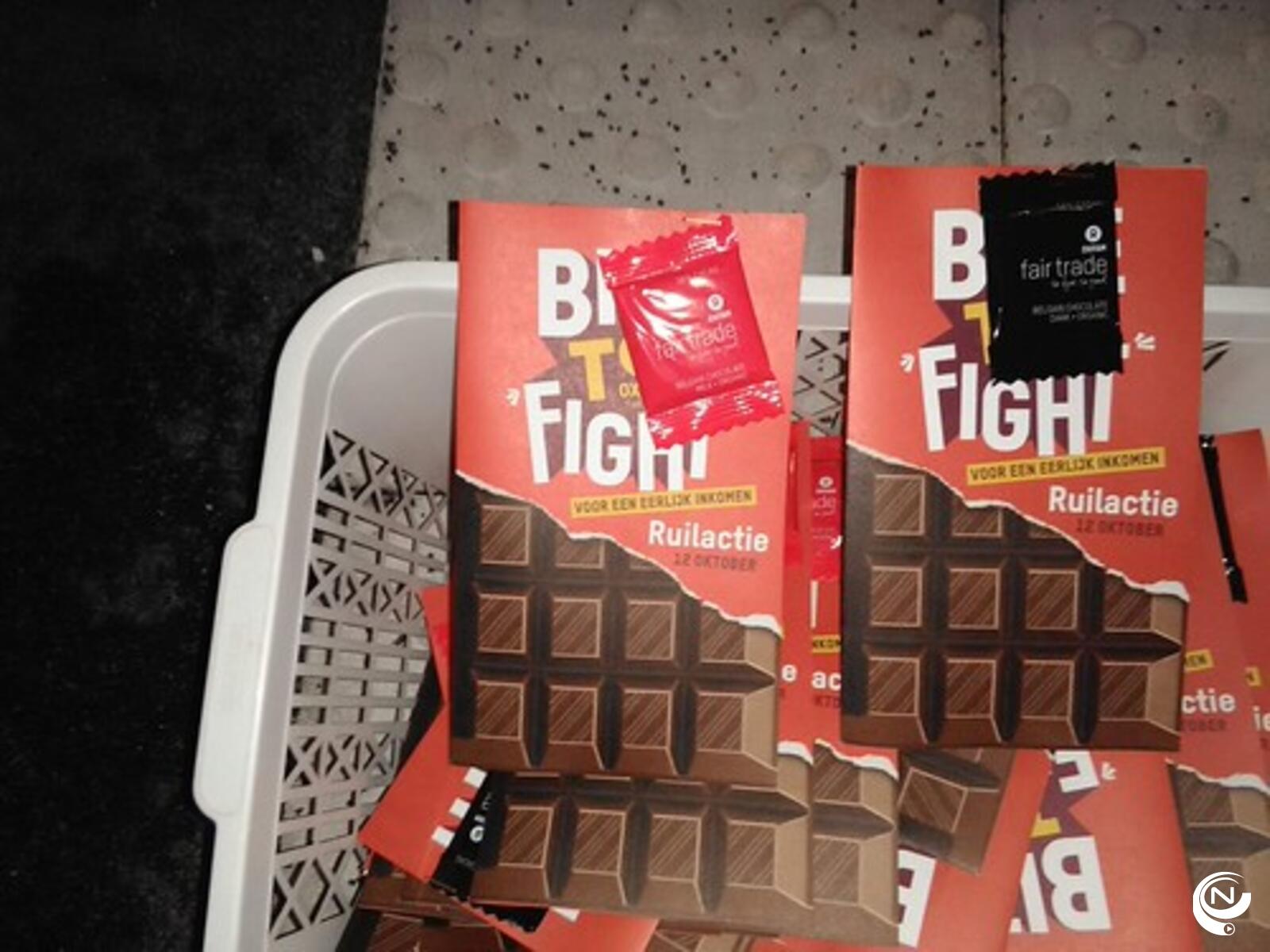 Ook werden de pendelaars uitgenodigd voor de ruilactie van oxfam wereldwinkels. Op 12 oktober kan je met een lege wikkel van eender welk merk inruilen voor een stuk eerlijke chocolade van oxfam wereldwinkels.