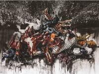 De schilder stapelt de diertjes op en reconstrueert het tafereel als een stilleven op groot formaat. Hij gebruikt de speelgoeddiertjes in dit geval als artificiële modellen om hun archetypische en iconische kwaliteiten te benadrukken.