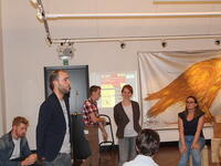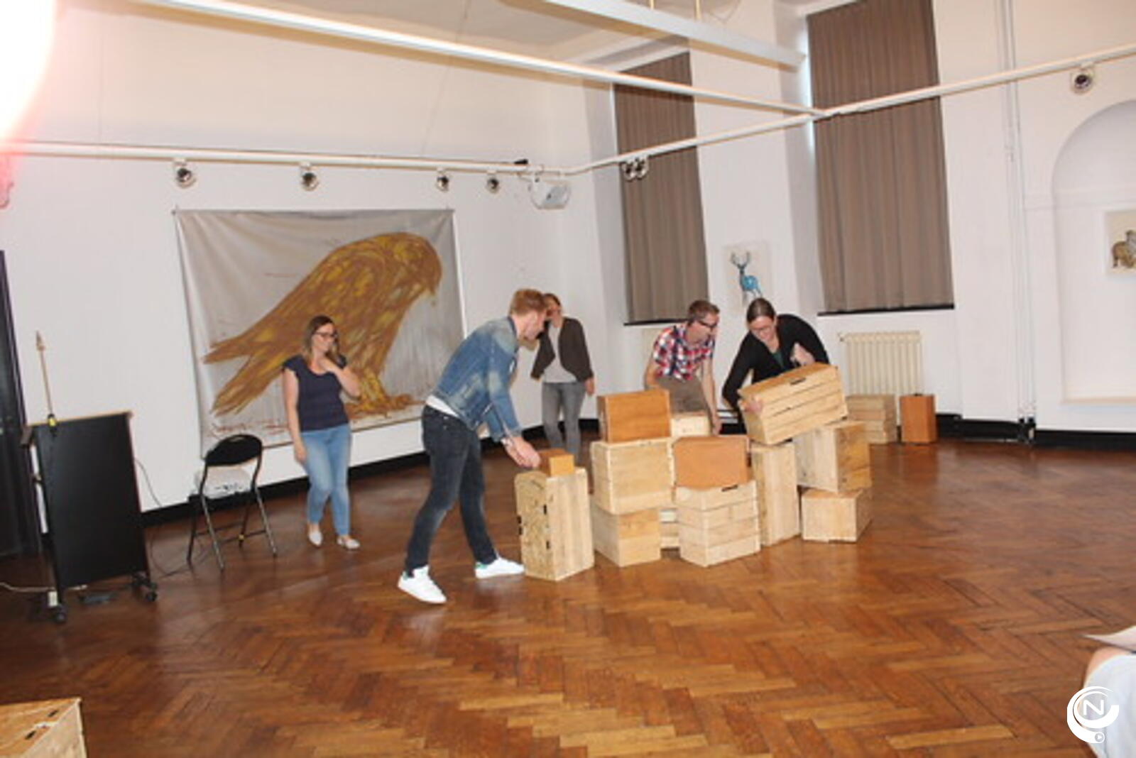 Bank vooruit bestaande uit Kirsten Goossens (Sam), Bart Lambrechts (Victor), Stijn Peeters (Arthur), Sanne Spruyt (Noor), Carolien Van Dael (Lena) en Stijn Neefs (script en regie).