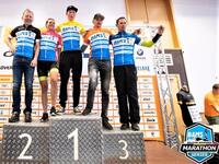 Ondanks zijn schedel- en oogkasfractuur in november vorig jaar, mag Huygen nu al terugblikken op een prachtig seizoen. Tijs gaat nu vooral genieten van deze gele trui en wil zich al focussen op volgend seizoen waar hij zeker de Transalp (Italië) MTB zal meerijden.' Foto's PT/ Nnieuws.