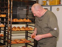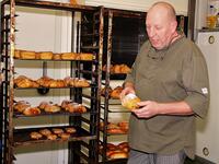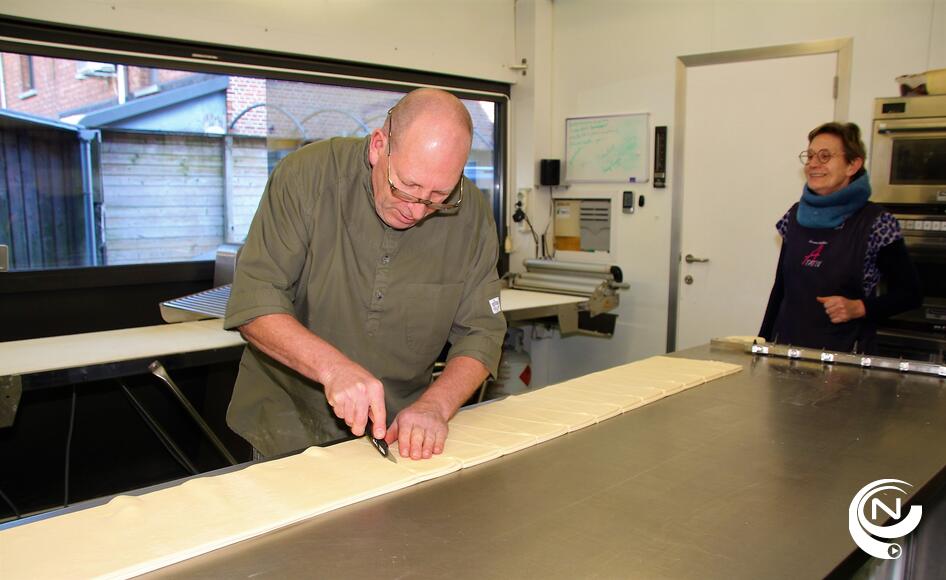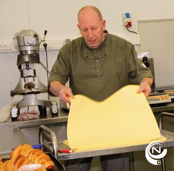Foto's : De bekende Herentalse ambachtelijke bakker Tom Smet pur sang van 'A Tatin' presenteert z'n ambachtelijke koffiekoeken met echte boter en croissants à la Française - Tom Smet geeft heel wat bakkersgeheimen prijs /  beelden Johan Temmerman/NNieuws - red. Guy Verellen.