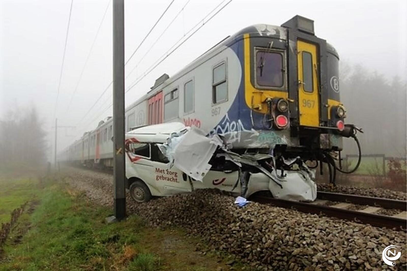 Bij de aanrijding tussen een trein en een bestelwagen van bpost vrijdagochtend aan een overweg in Achterlee Lichtaart heeft de zware mist een rol gespeeld. Aangezien er heel wat schade is, zal het waarschijnlijk nog tot de namiddag duren eer het treinverkeer tussen Herentals en Turnhout wordt hernomen.
