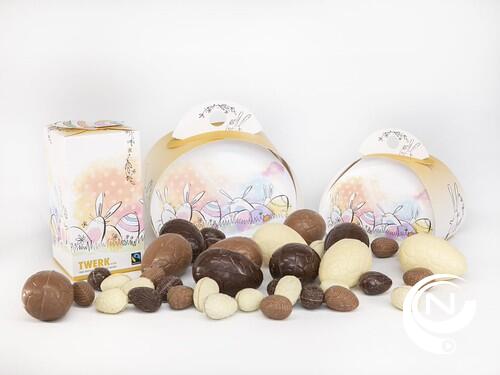 TWERK maakt voornamelijk paas-chocoladepakketjes op maat van bedrijven, maar geeft nu ook particuliere klanten de mogelijkheid om (h)eerlijke FairTrade-paaseitjes te komen kopen. Tot en met de vrijdag voor Pasen opent het daarom een Paas-Pop-Up in de Collegestraat.