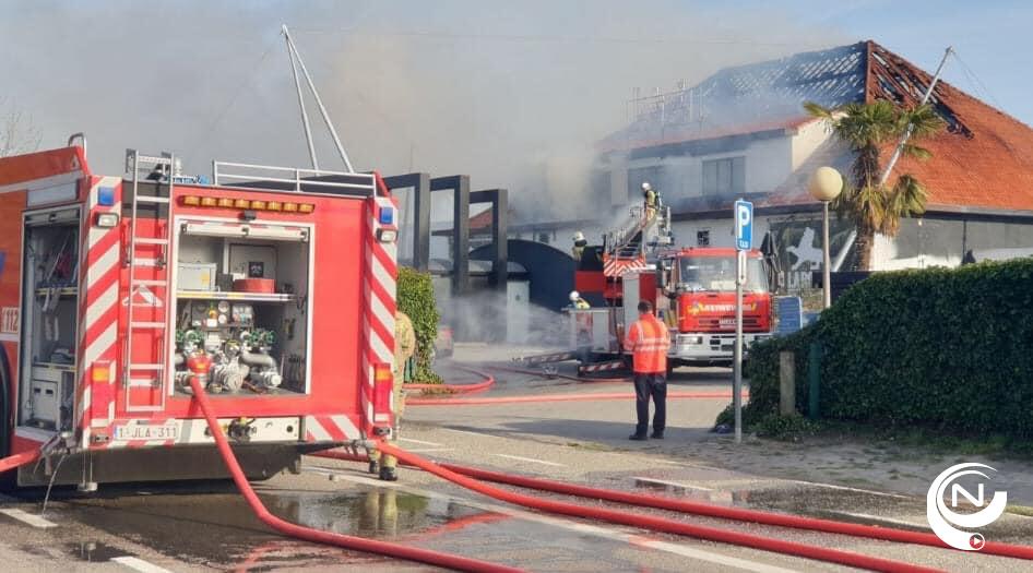 "Toen we ter plaatse kwamen was er al veel rookontwikkeling. Een tijdje later is de brand volledig door het dak geslagen", zegt de brandweercommandant van zone Pallieterland. "Het was zo hevig en warm dat we boven niet doorkonden." De brand zelf is intussen onder controle, maar de brandweer zal nog 2 à 3 uur werk hebben met nabluswerken.
