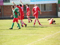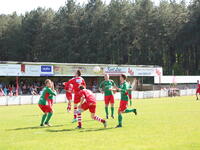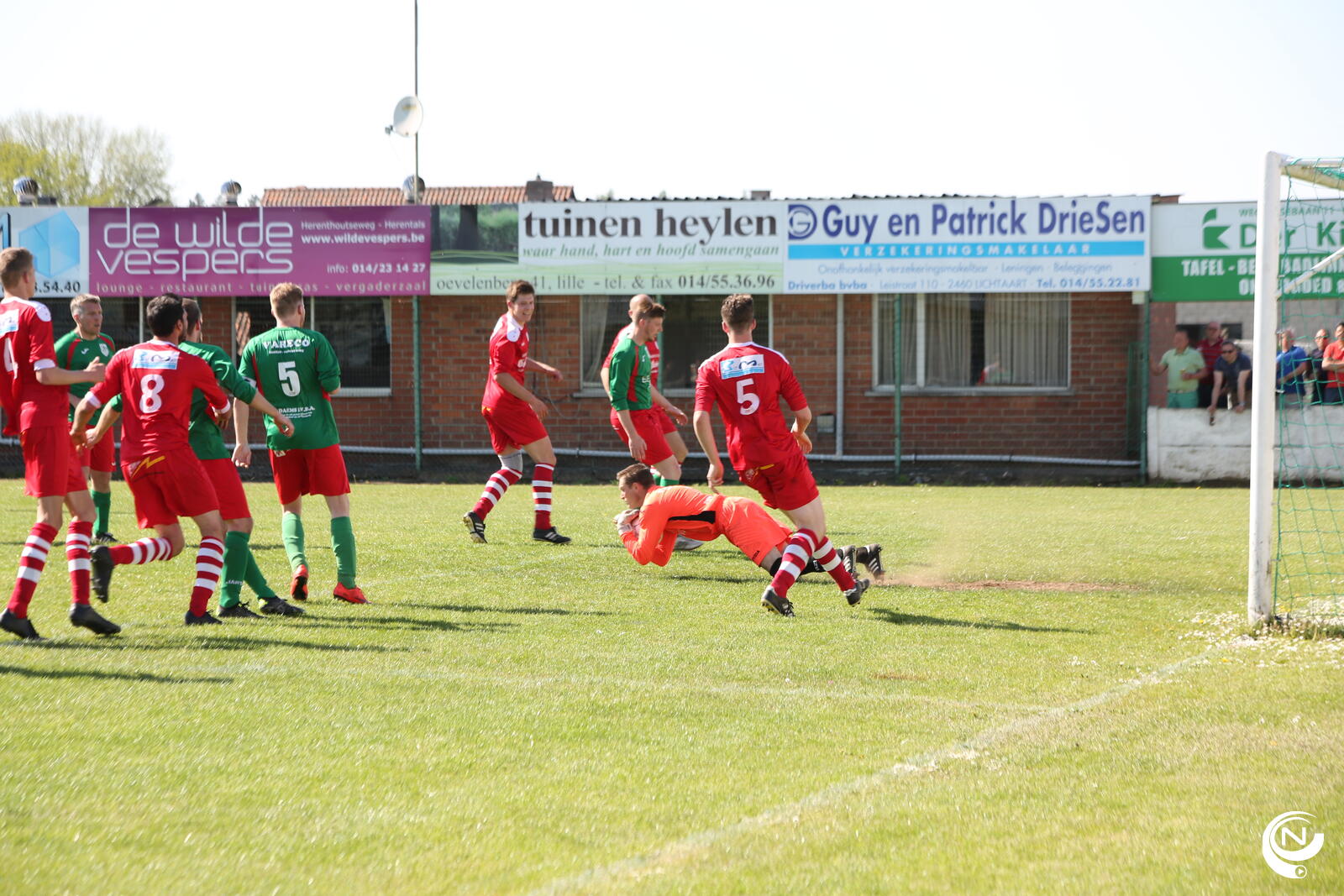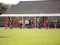 Tot affluiten bleef het ontzettend spannend met de wankele 1-1. De bezoekende doelman ging vaak mee in de aanval.Alles op alles.