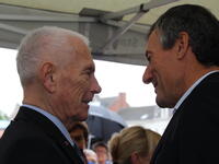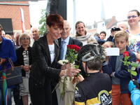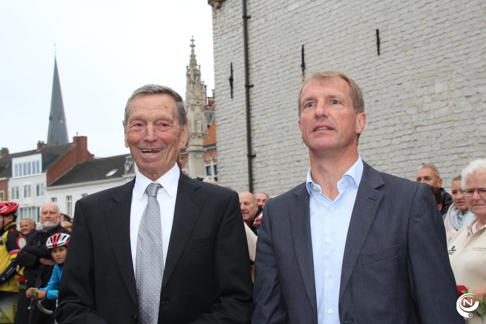 De Herentalse wielerkeizer werd onder begeleiding van de fanfare van het Sint-Jozefscollege naar zijn fans begeleid. Zijn grote vriend, voormalig Anderlecht-preses Michel Verschueren, stond hem daar samen met de wielerjeugd van de Vlaamse Wielerschool in een erehaag op te wachten.