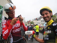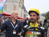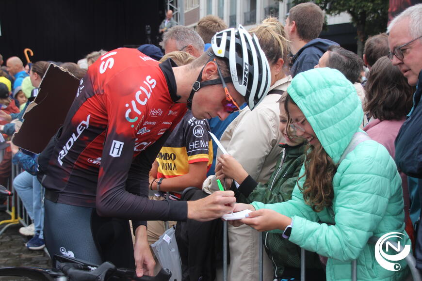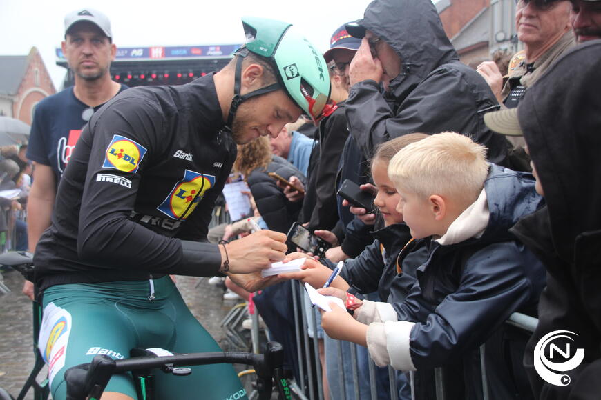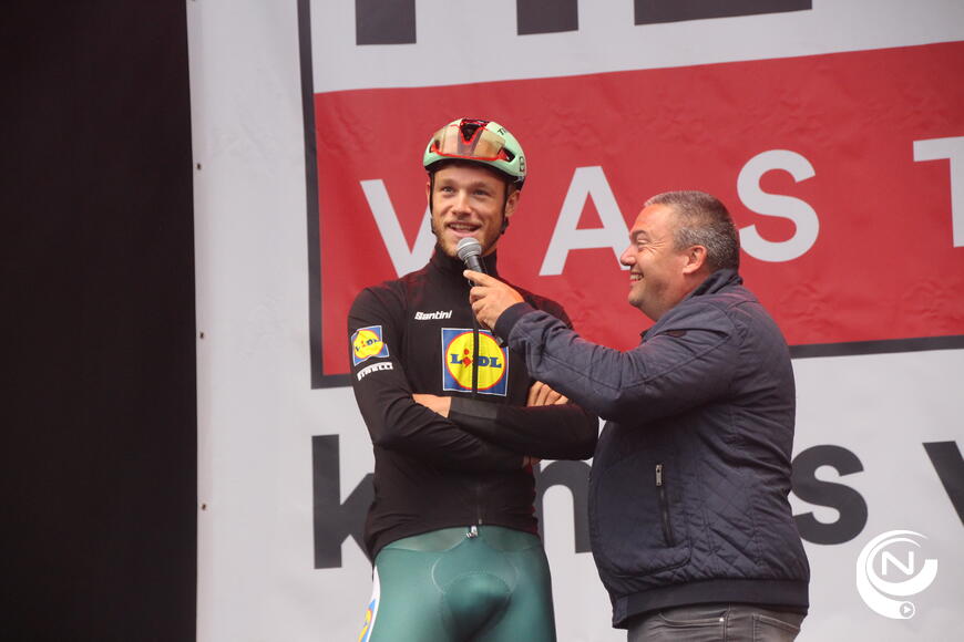 In een stevige sprint, een krachtmeeting tussen de 3 Tour toppers, op een doorregend kasseiparcours, bleef Wout groene trui Jonathan Milan (IT) en Kaden Groves (AUS) voor. Victor Campenaerts werd 4e.