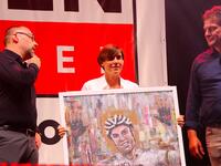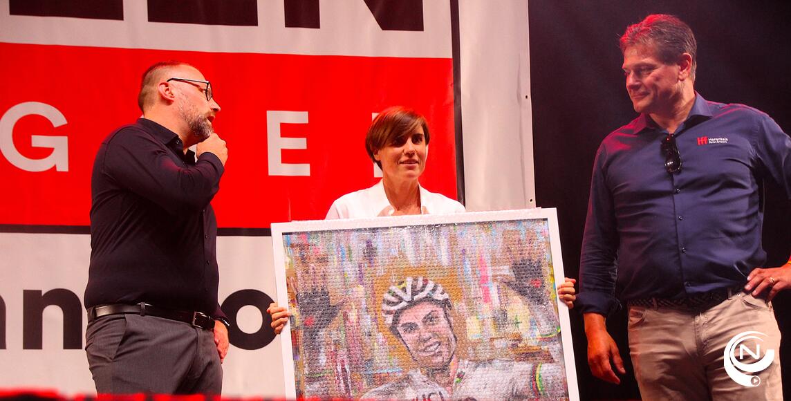Uit handen van burgemeester Jan Bertels kreeg de 15-voudige Belgische kampioene een uniek kunstwerk overhandigd. HFF-voorzitter Luc Verheijen had ook een geschilderd portret van haar klaar.