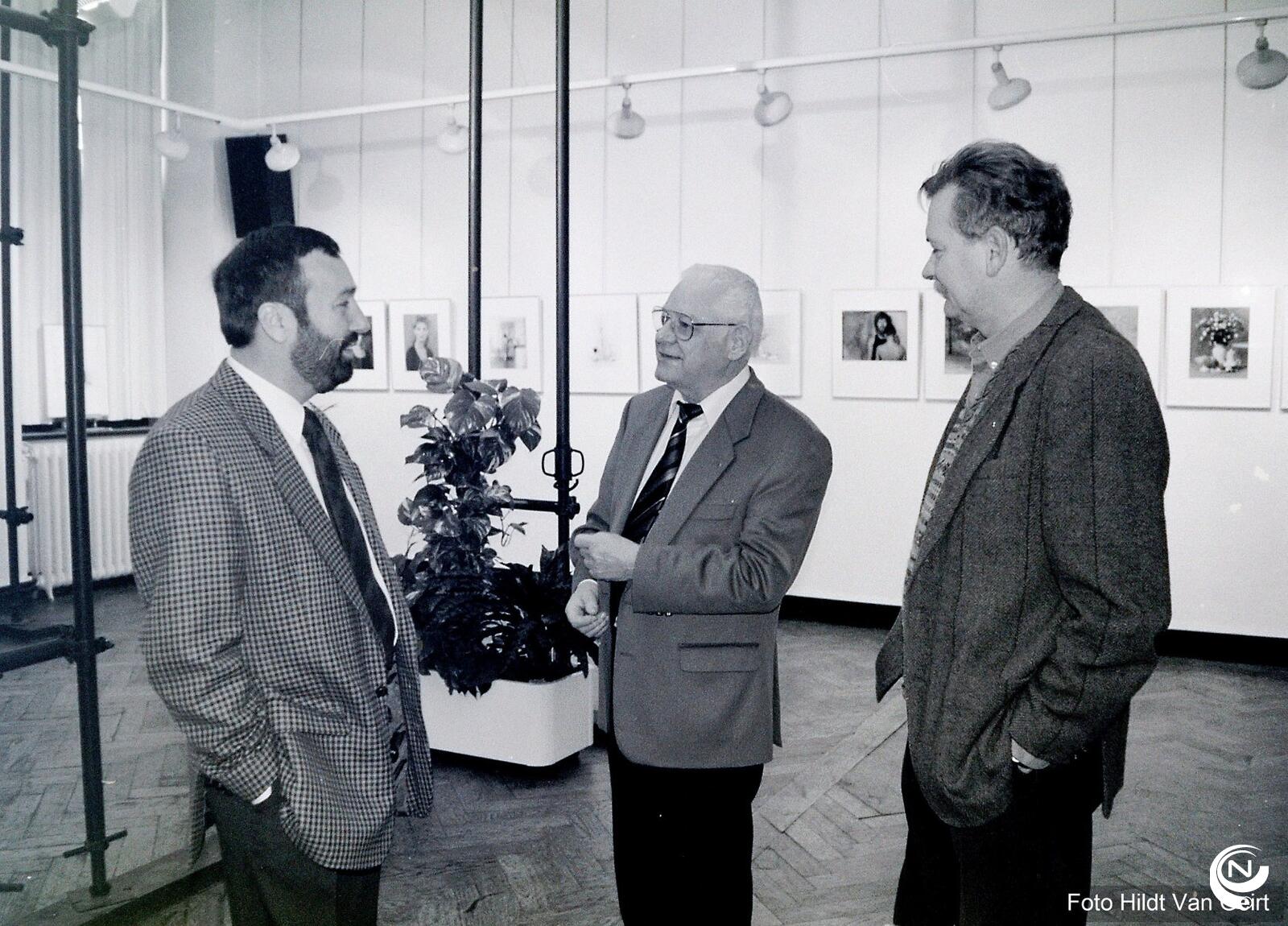 Op de foto's : Xavier Puls in het midden, samen met fotografen Jos Vermeulen en Louis Verbraeken - op de groepsfoto : Xavier houdt als laureaat de tinnen schotel vast, de lokale persprijs voor KFL Herentals in 1980 - verder nog op de foto : o.a. wijlen journalist Bruno Bomberen, Gust Tegenbos (voorzitter Herentals Toneel) en Modest Verellen (voorzitter BGJG Gezinsbond).