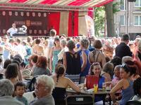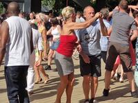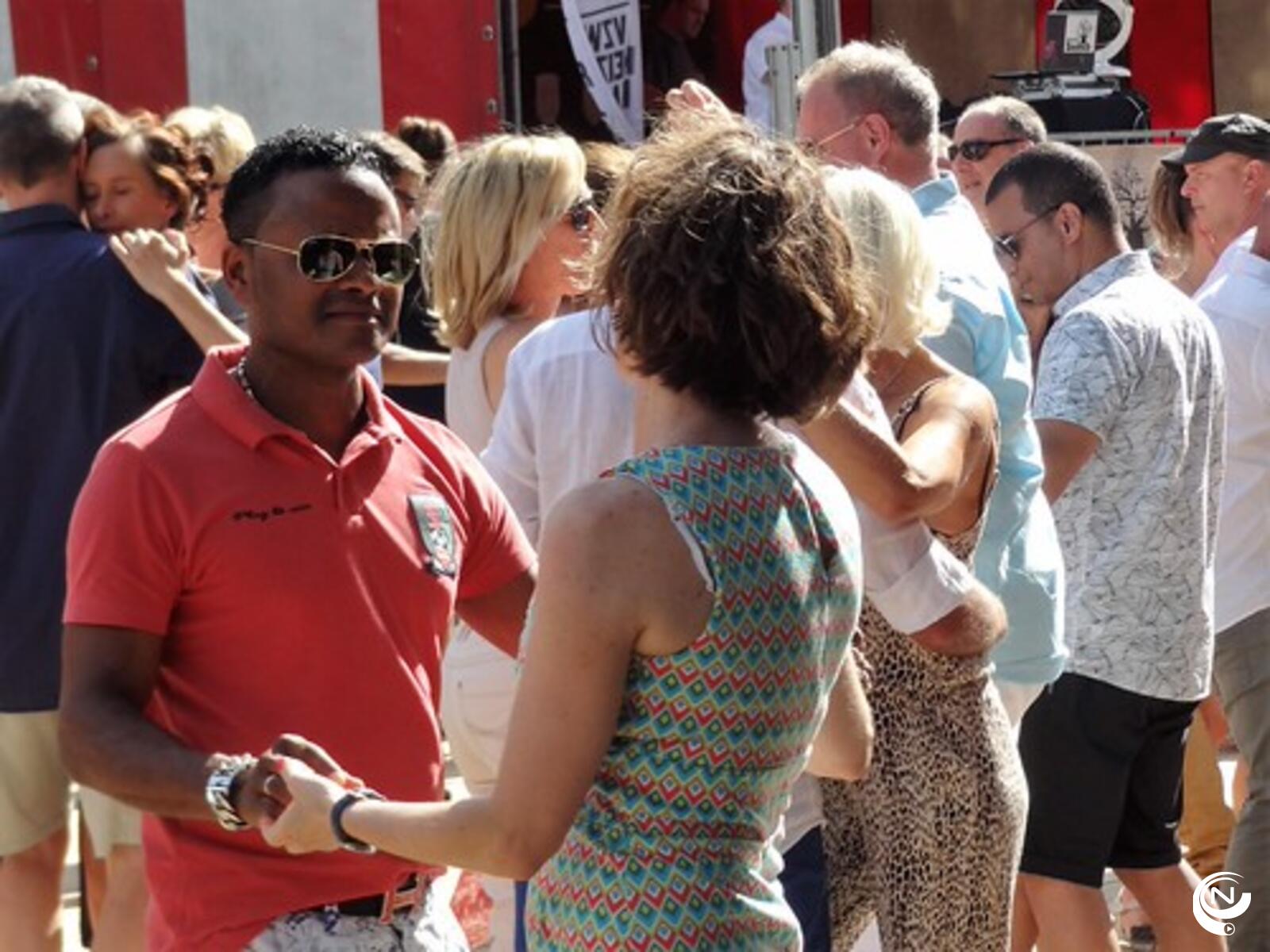 Gans de namiddag stond de dansvloer voor het podium vol met liefhebbers van salsa, merengue, soca en andere Zuiderse ritmes. Wat een exotische sfeer, dichtbij huis...